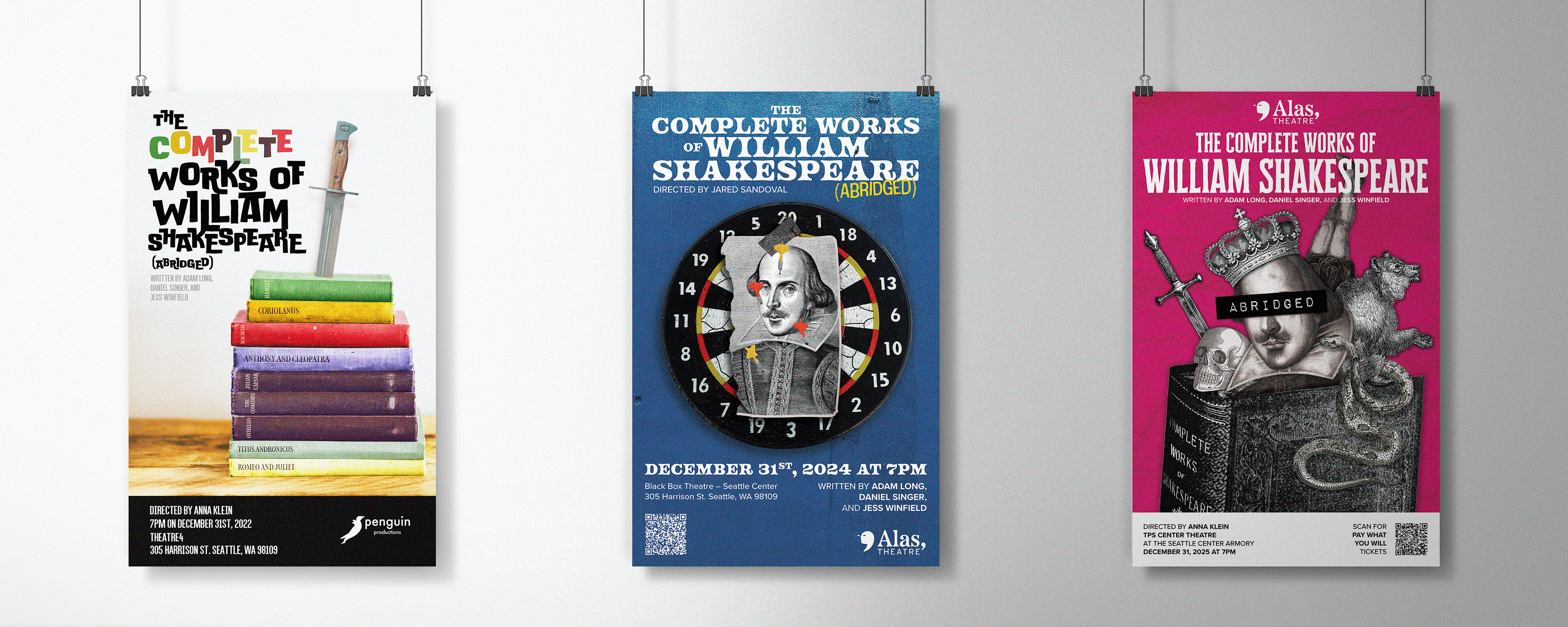I've worked with the creative director of Alas, Theatre for the last 3 years on the poster, program, social media content and sometimes other print or digital assets for their annual production of The Complete Works of William Shakespeare (Abridged). The show is very goofy and each year we've chosen a new, bold visual direction for the production. This year is the first year I've also assisted with bringing the brand of the show into the social media assets.