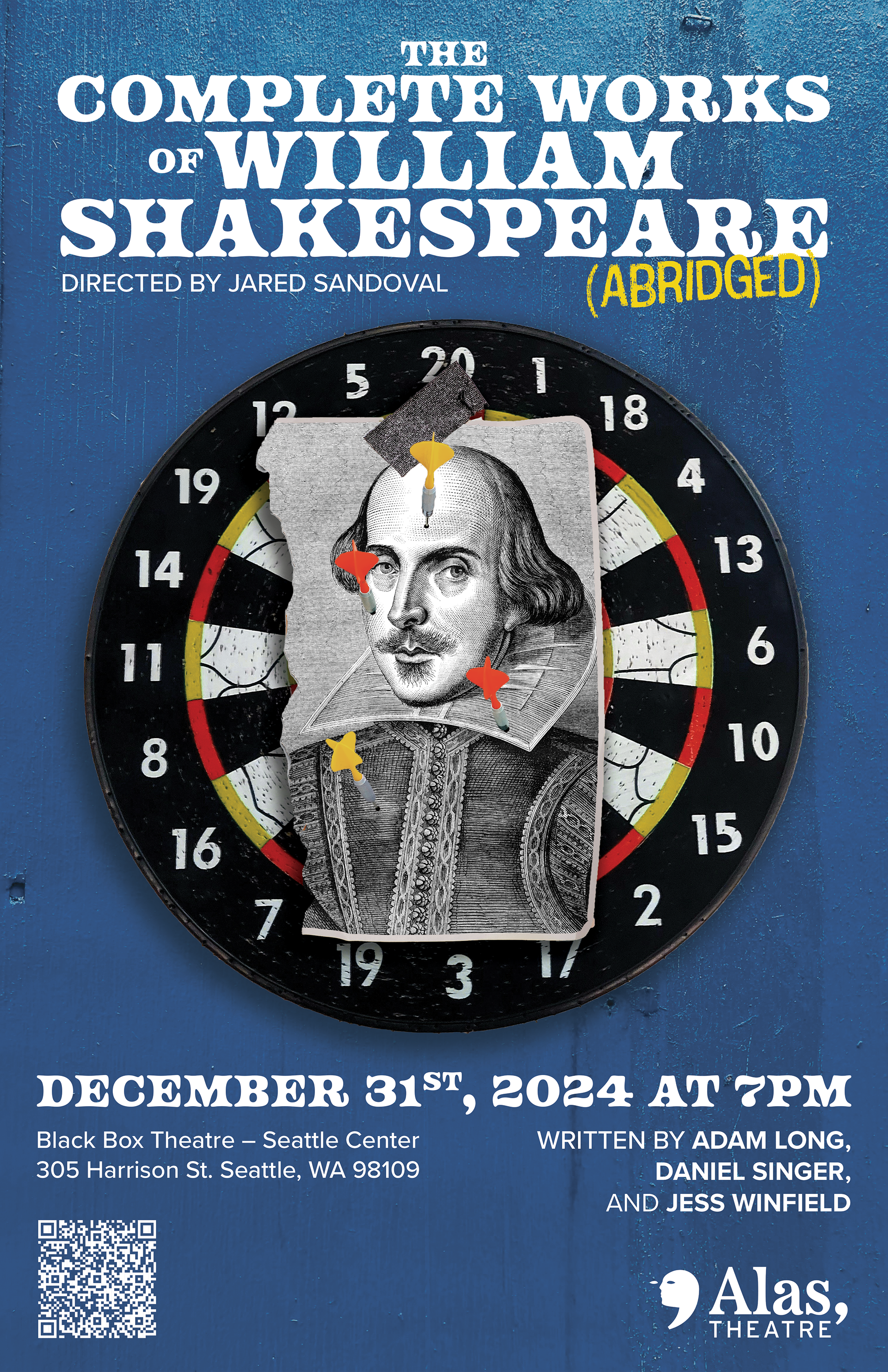 A friends theater company, Alas, Theatre, puts on an annual production of "The Complete Works of William Shakespeare (Abridged)". They approached me about designing a poster and social graphic, wanting to utilize the imagery of Shakespeare being pinned to a dartboard. After a few rounds of revisions this is the final set of images we landed on, emphasizing the fun, playful nature of the show.
