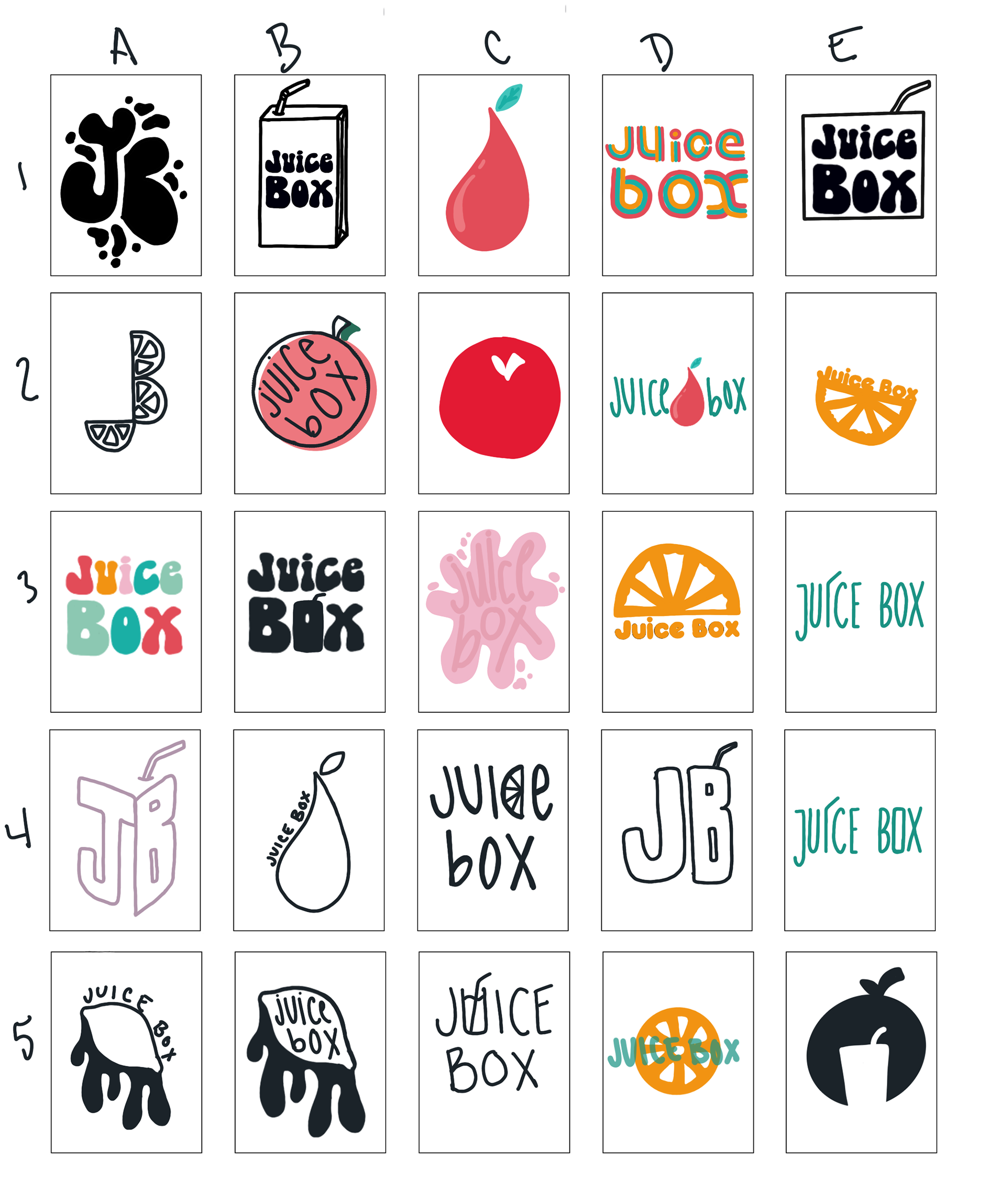 To start with this project I spent a lot of time sketching, trying to explore how a logo could look for Juice Box in different styles and types of logos.