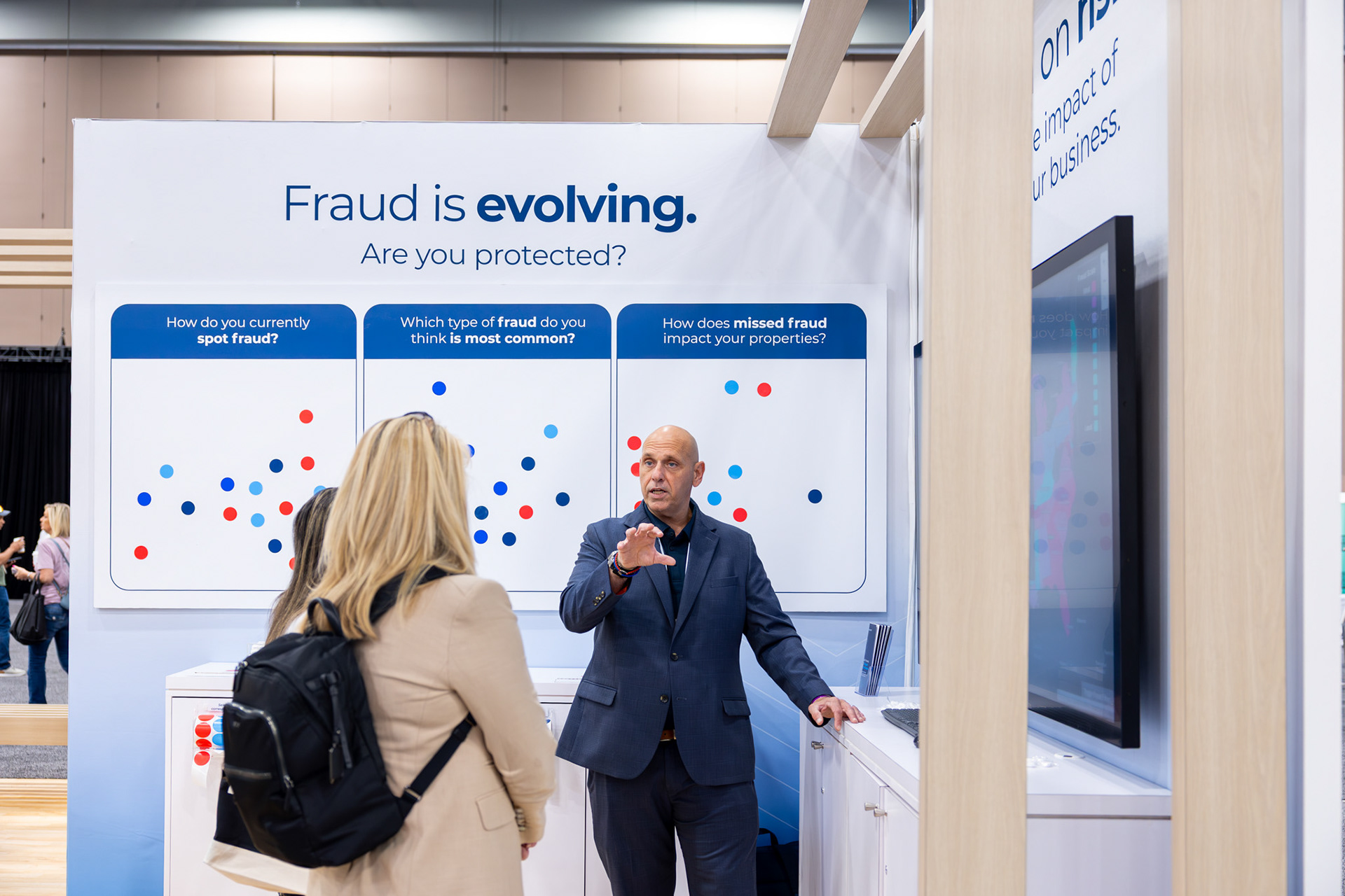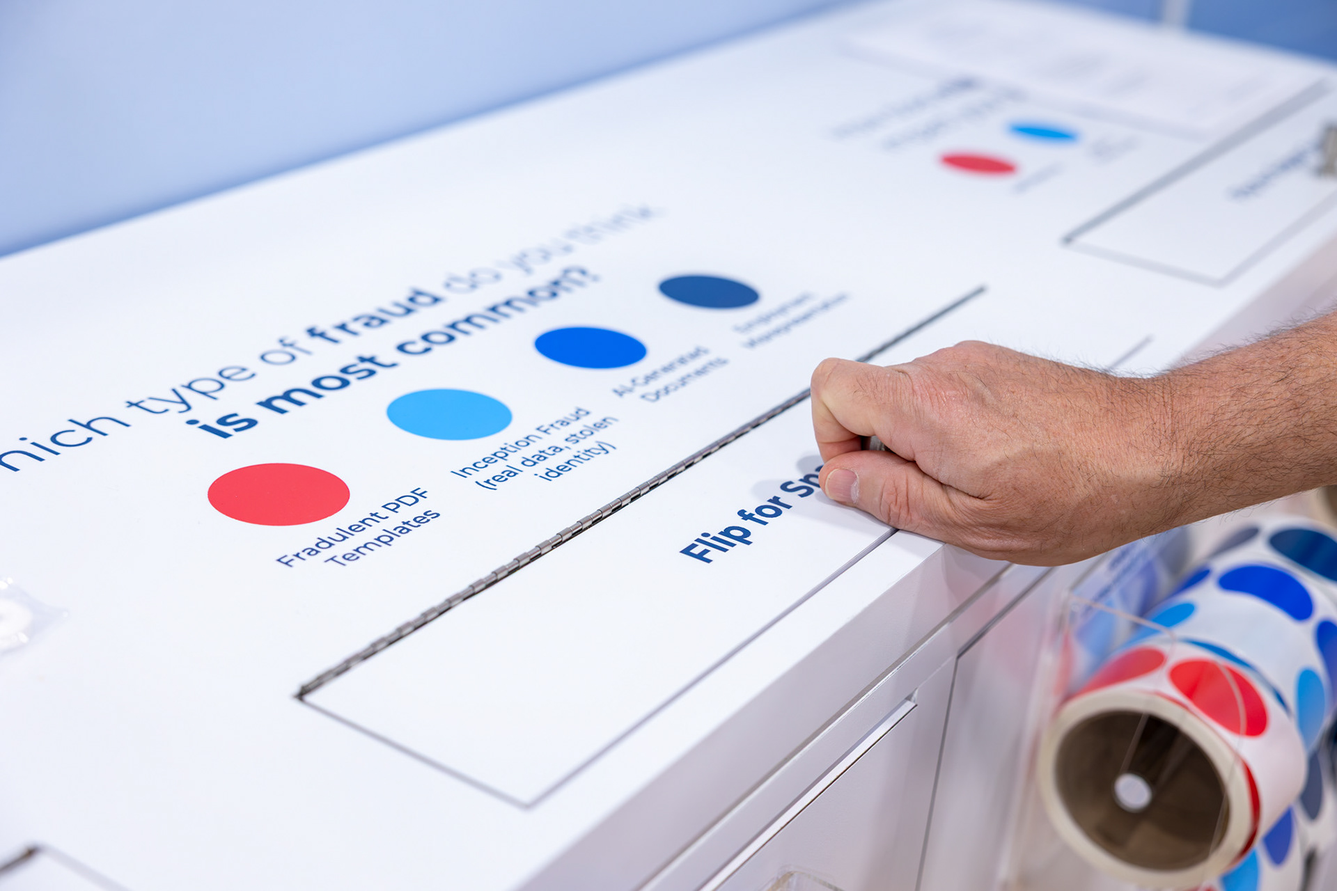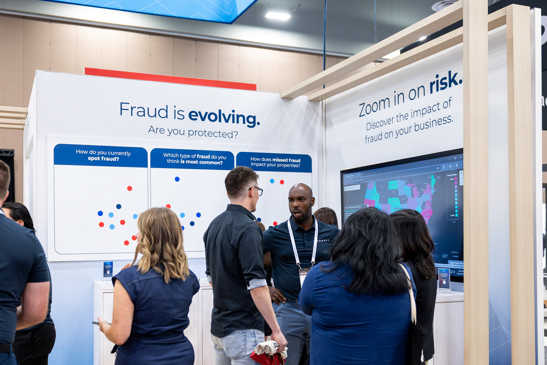 Design the wall graphics for Snappt's booth at NAA 2025, including an interactive element that engages visitors to guess the correct answers to fraud questions in a visual way.